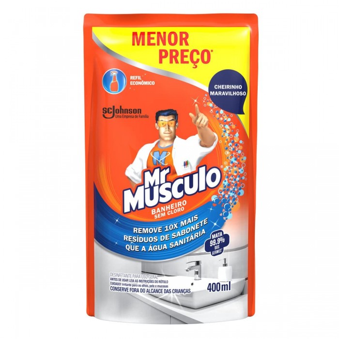 Mr. Músculo Banheiro Total tem poderosa fórmula sem cloro que permite que o produto seja usado em todas as superfícies do b..